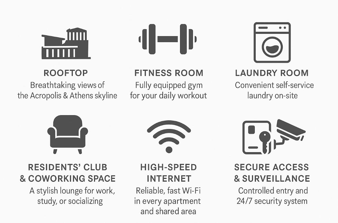 Urban Liv Athens blends modern design, smart amenities, and a rich historical legacy to create a unique living experience for students, professionals, and travelers.